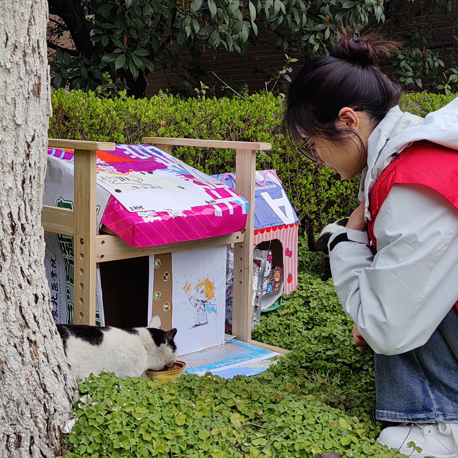 书院青年志愿者联合会发起了“春日暖居计划”,志愿者化身“喵界建筑师”,亲手为校园流浪猫制作过冬暖窝。