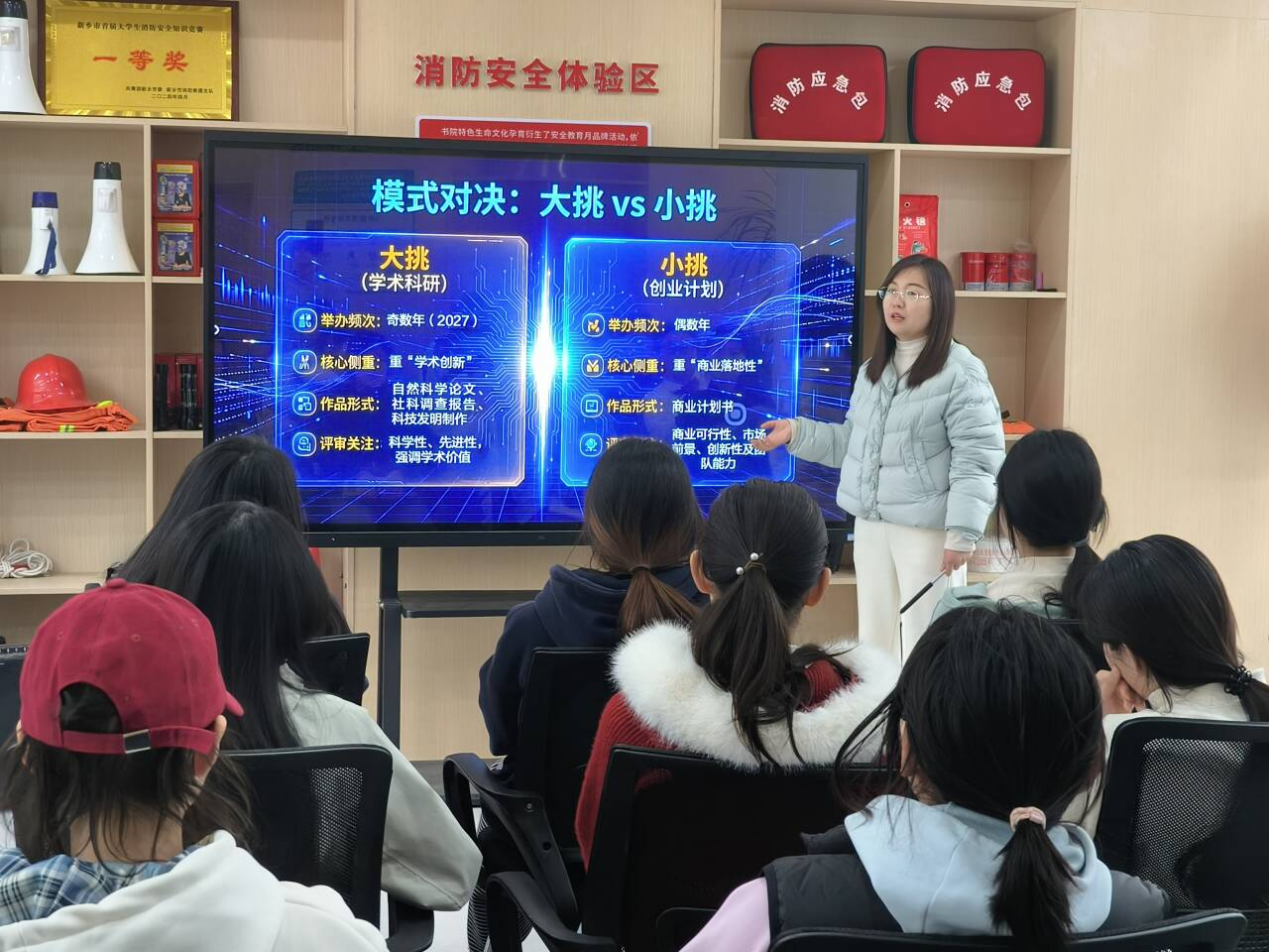 仁术为医者履职之要。书院以“精仁术”为导向,构建双院联动、以赛促学、科创筑梦的人才培养模式。在“挑战杯”经验分享会,邀请优秀学子传经送宝,随后联合智能医学工程学院举办2026年“挑战杯”备赛解读分享会,特邀吴贝贝老师系统解读赛事规则、赛道设置与备赛要点,重点指导生物医药与健康科技赛道选题,围绕计划书撰写、PPT设计、现场答辩、财务预算、风险控制等进行全流程指导,帮助学生明晰方向、精准备赛。书院以赛事为平台,引导学生深耕专业、勇于创新,不断提升医学专业素养与实践创新能力。