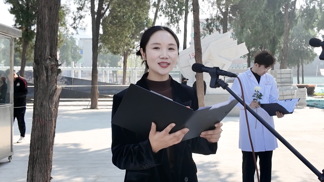 日新书院党委书记王莉致祭文。她向革命英烈表达深切缅怀与景仰之情,并对全体师生提出三点要求。一是缅怀先烈、铭记功勋,永远铭记革命烈士为国家和民族作出的伟大牺牲,让英烈英名与山河共存、精神永垂不朽;二是传承精神、践行使命,将英烈精神作为医学教育的生动教材,把医者仁心与英烈赤子之心相融,将守护人民健康与先辈守护家国安宁的初心相联,让红色基因融入血脉;三是砥砺前行、继往开来,以英烈为榜样,坚定理想信念,精进医德医术,把个人理想融入健康中国建设与民族复兴伟业,以实干实绩告慰英灵。