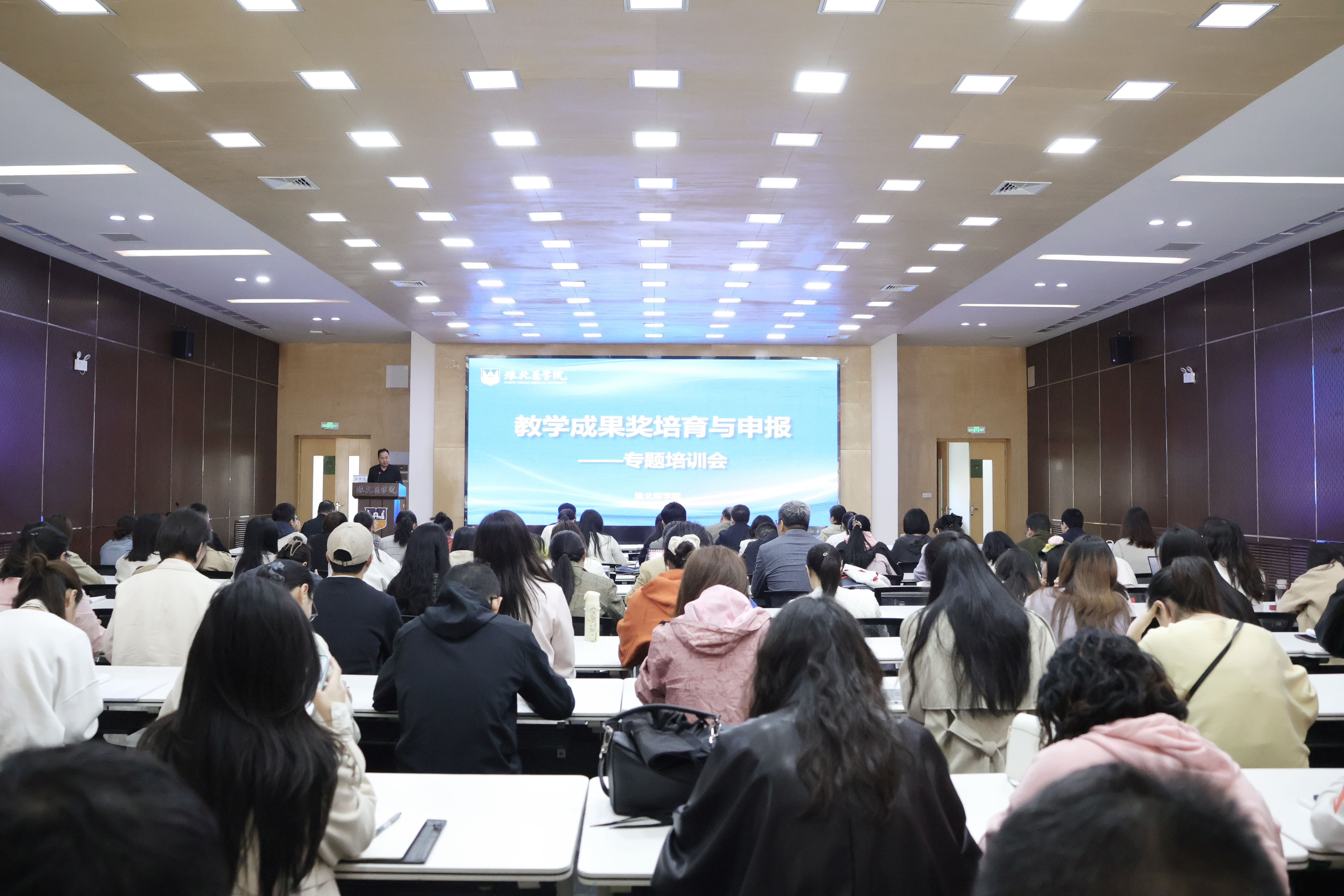 学校相关职能部门、各院(部)分管教学负责人、教师代表及教学成果奖培育项目团队成员等140余人参加本次培训。