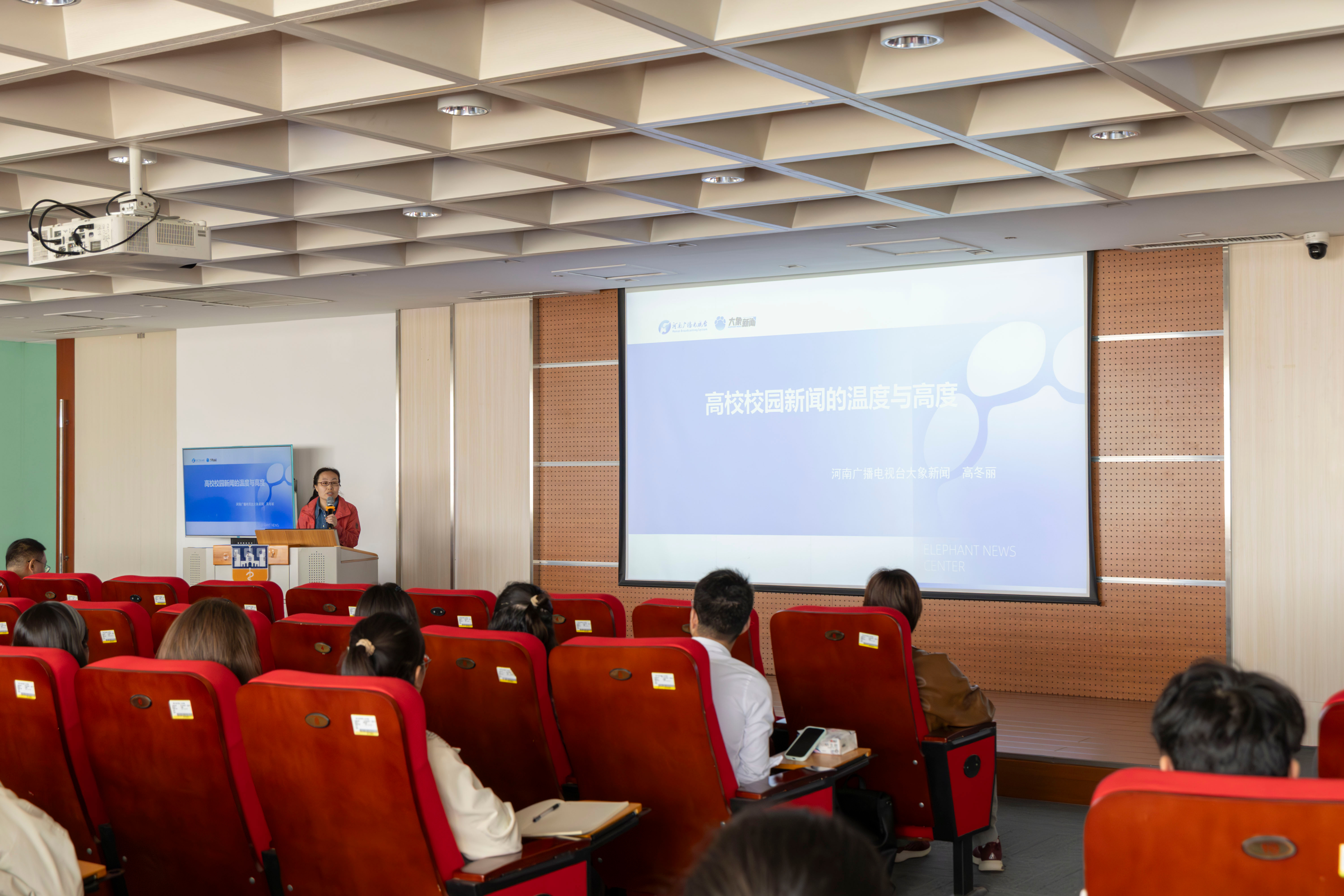 活动邀请河南电视台资深记者高冬丽、黄淮学院网络与新媒体系副主任刘文琦联袂开讲,培训内容紧扣高校新闻创作与AI 赋能宣传两大主题,以理论讲授、实操演示、案例拆解相结合,内容贴近实战、干货密集,全程气氛热烈。