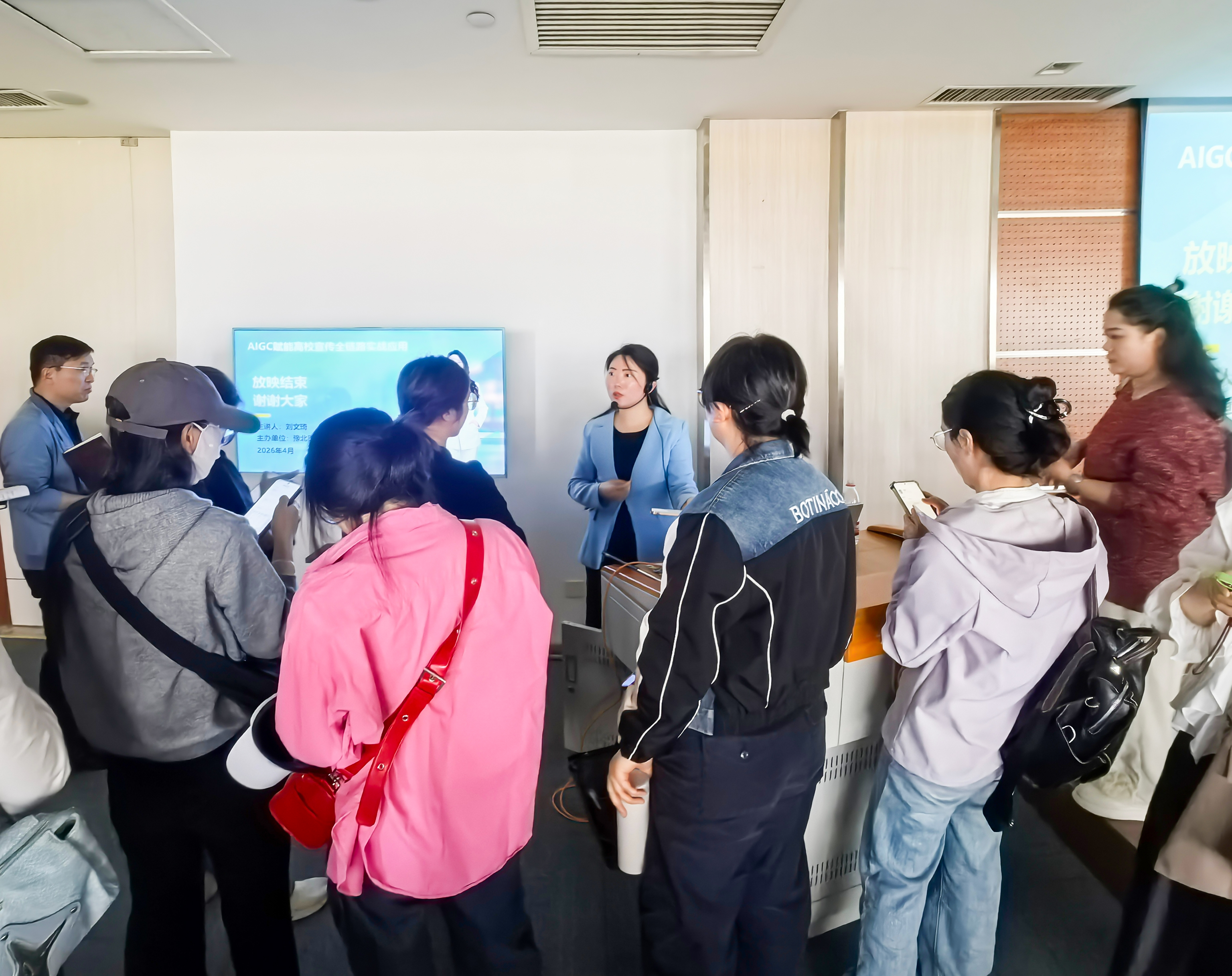 “老师,我想添加一下您的微信!”“我想再深入了解一下关于文生视频、图生视频的具体操作!”4 月 17 日,豫北医学院宣传部专题新闻宣传讲座圆满结束后,师生们围着专家不愿散去,他们争相请教、添加微信,将学习热情推向高潮。
