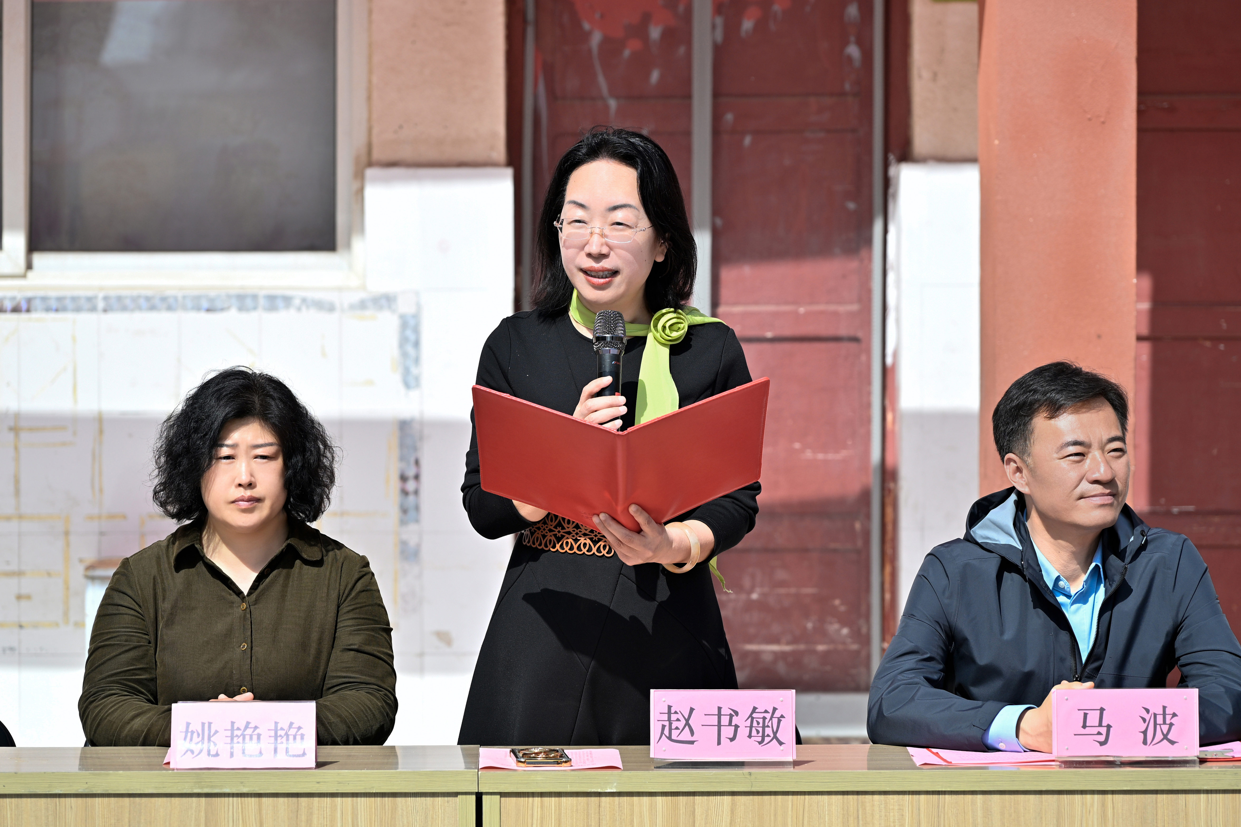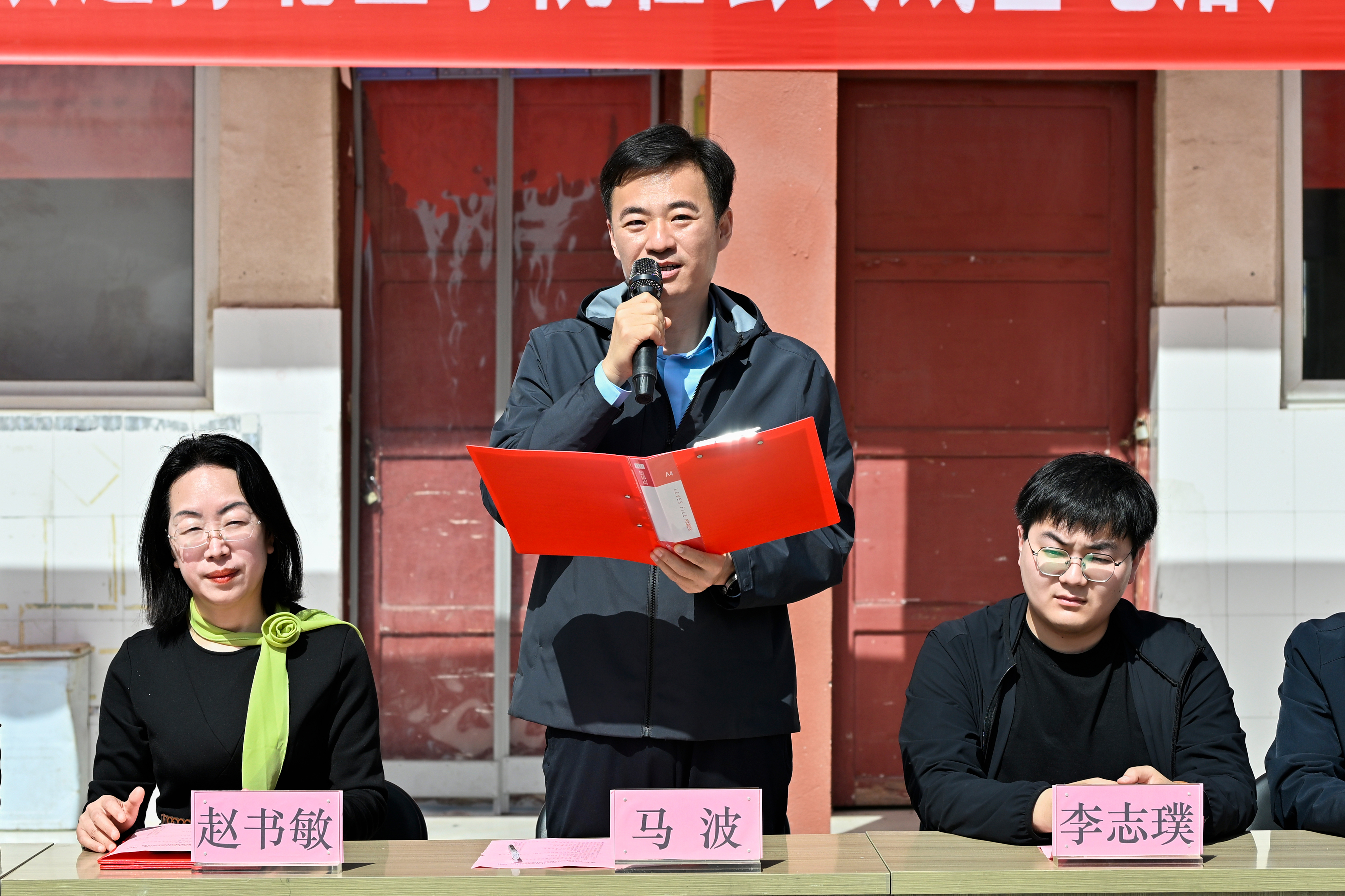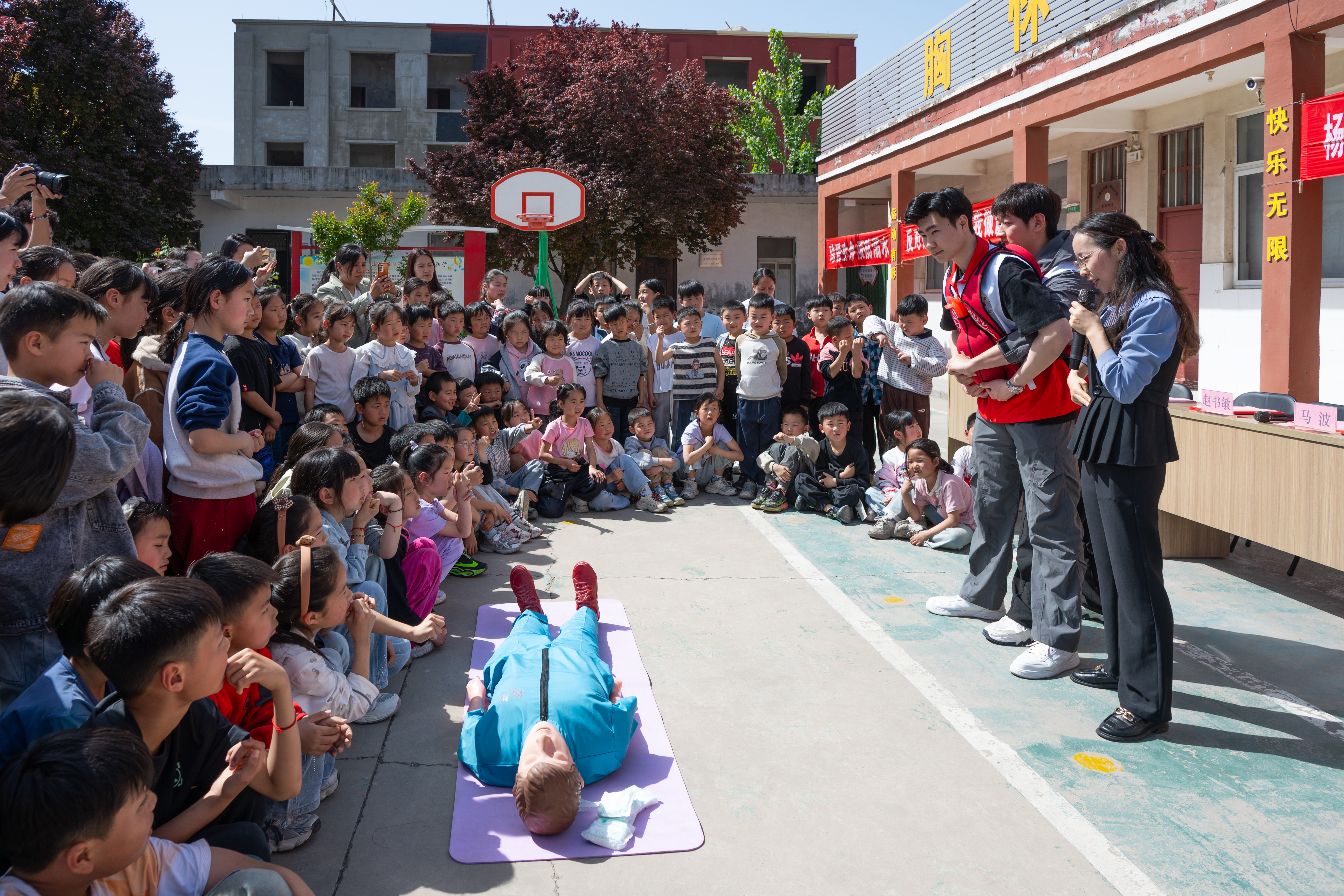 平原示范区教体局校外监管科主任赵淑敏致辞。她表示,本次活动是豫北医学院践行服务地方人民健康使命的实际举措,对精准补齐基层校园健康科普短板、普及生命至上理念、强化校园安全防护能力具有重要意义。她强调,本次活动是一次“大手拉小手”的生动实践,是一堂“人人学急救”的生命必修课,更是一场“协同育新人”的温暖接力。