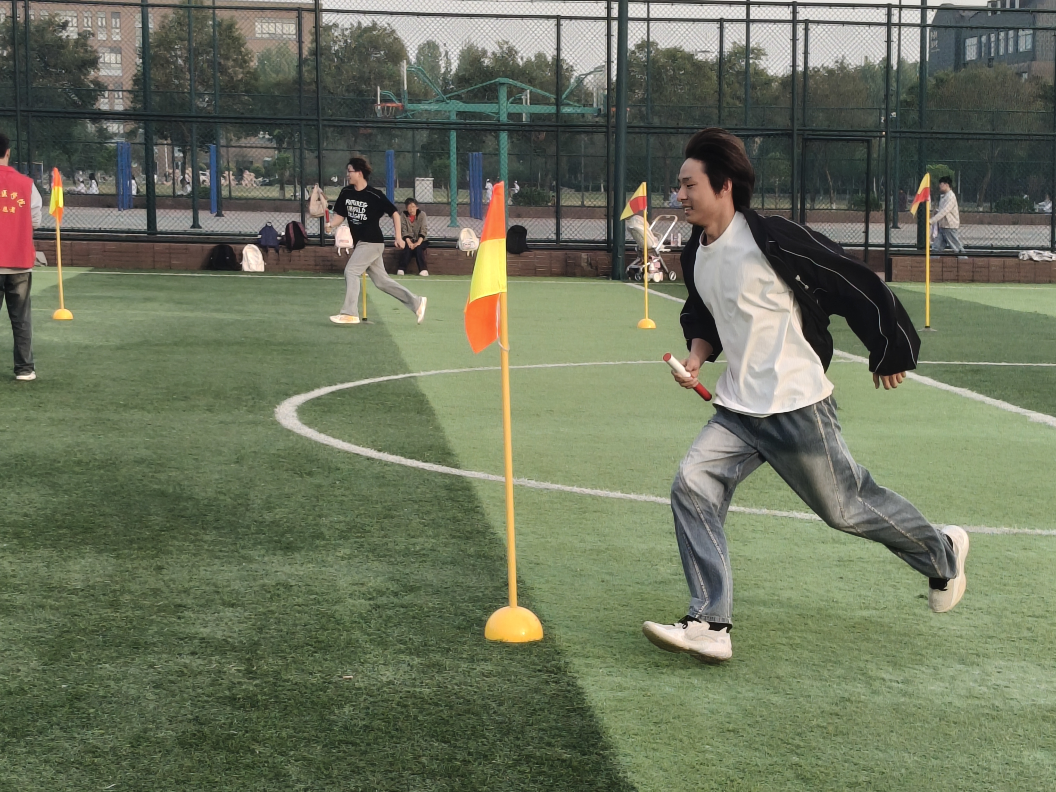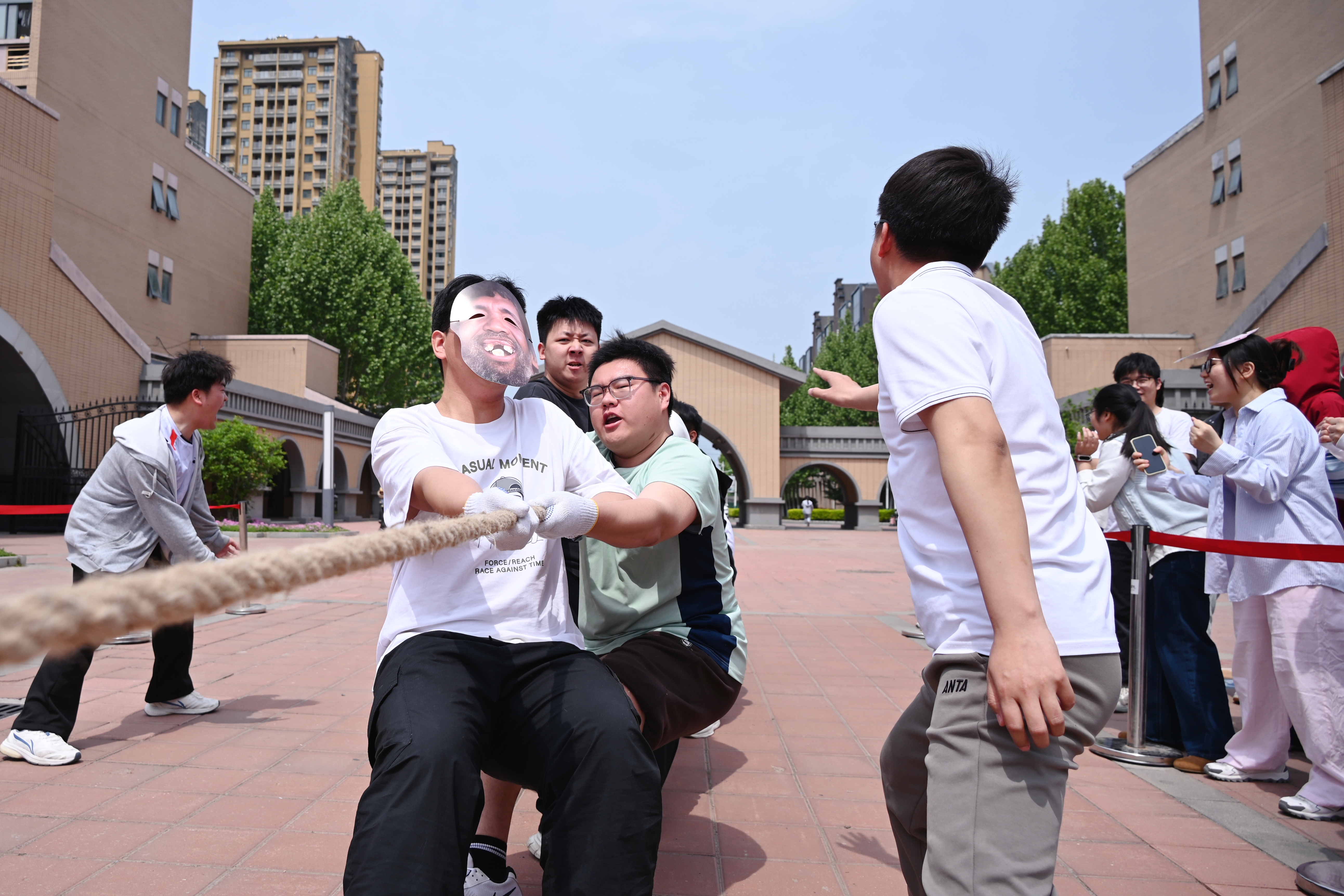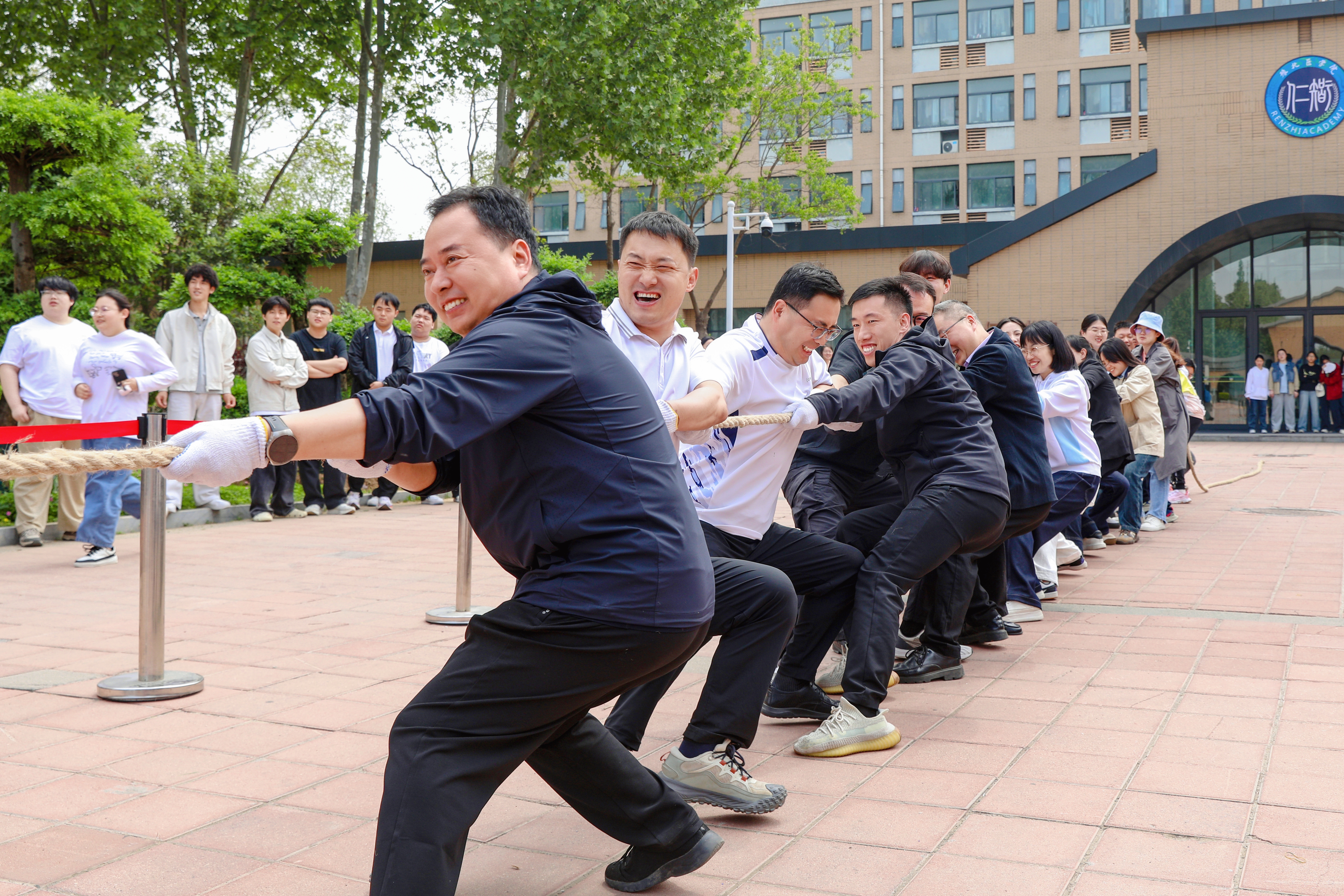 师生同台竞技,成了赛场上最暖心的一道风景。赛场上处处有教师的身影,真正实现了“双院协同、师生共融”。拔河赛场上,老师们彻底“放飞自我”,有的套上憨态可掬的搞笑面具,有的喊出自创的魔性口号,学生们笑得前仰后合,手上却丝毫不肯松劲,场面既热烈又温馨。其他赛场上,师生也并肩作战、互相“拆台”又互相打气。没有讲台上下的距离,只有默契配合与真诚互动。这场以学生为中心、多方协同参与的体育嘉年华,让书院大家庭不仅更有温度,也更有凝聚力。